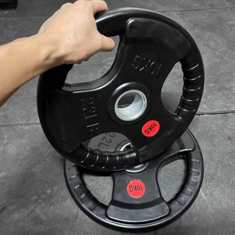 black rubberized three-hole hand grip barbell piece