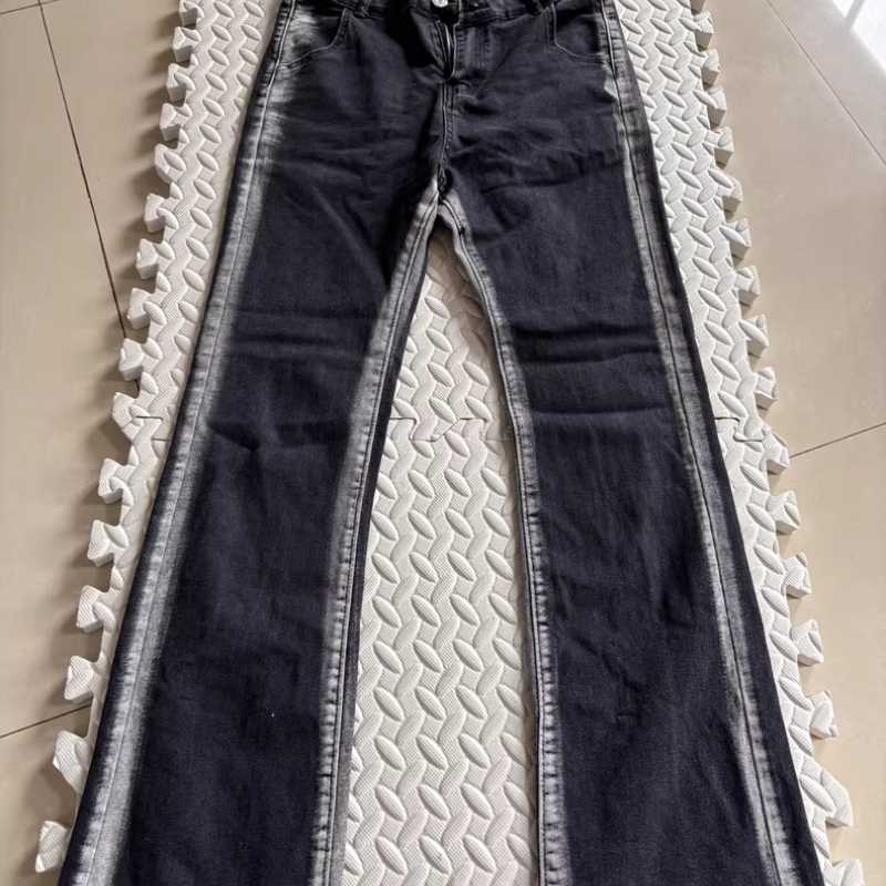 175 tall, elongated American hot girl, low-waisted, flared jeans, gradient floor-length style