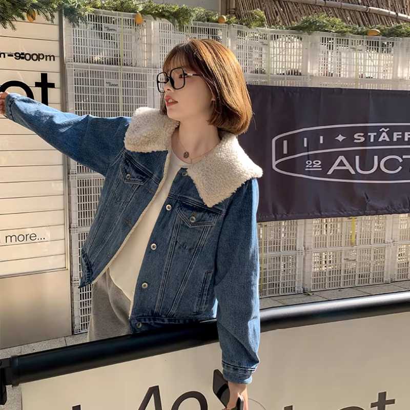 Large lapel lambskin denim jacket